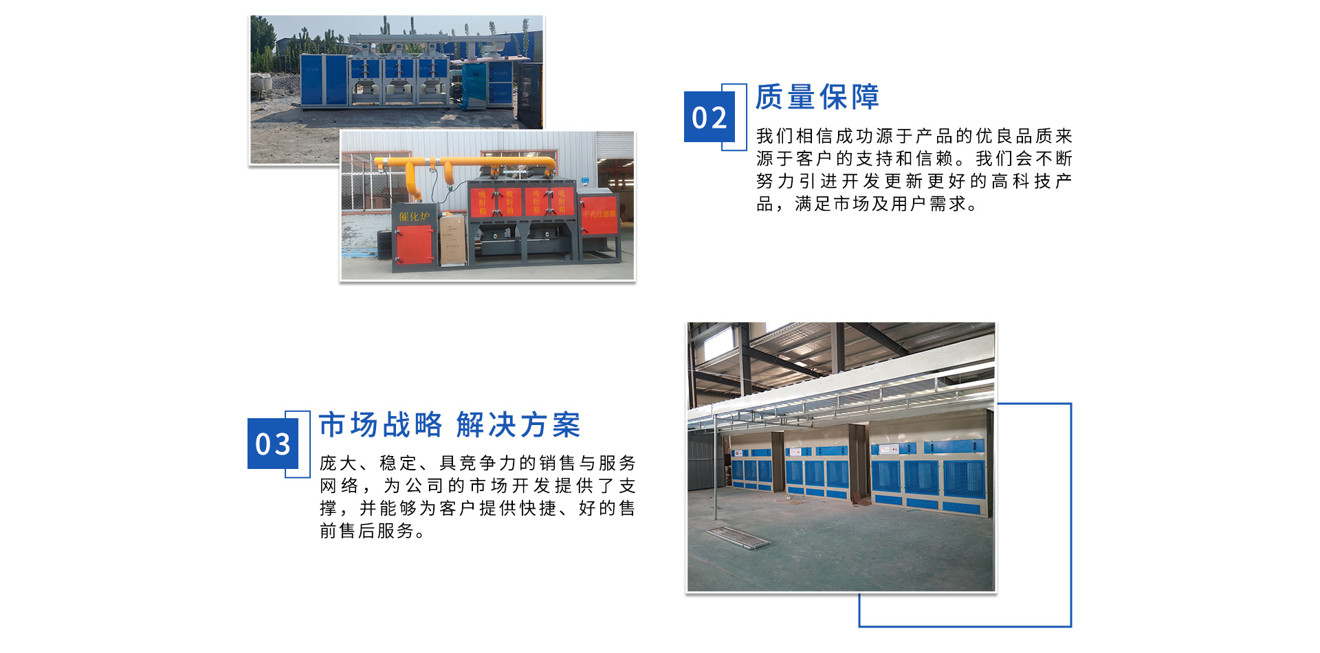 公司自成立以來,始終專注于工業廢氣、污水、粉塵等環境污染的治理,先后研發出催化燃燒設備、光氧催化廢氣處理設備、低溫等離子廢氣處理設備、粉塵處理-體化設備等一系列環保設備,產品先后通過ISO901質量管理體系認證、中國環境保護產品認證。